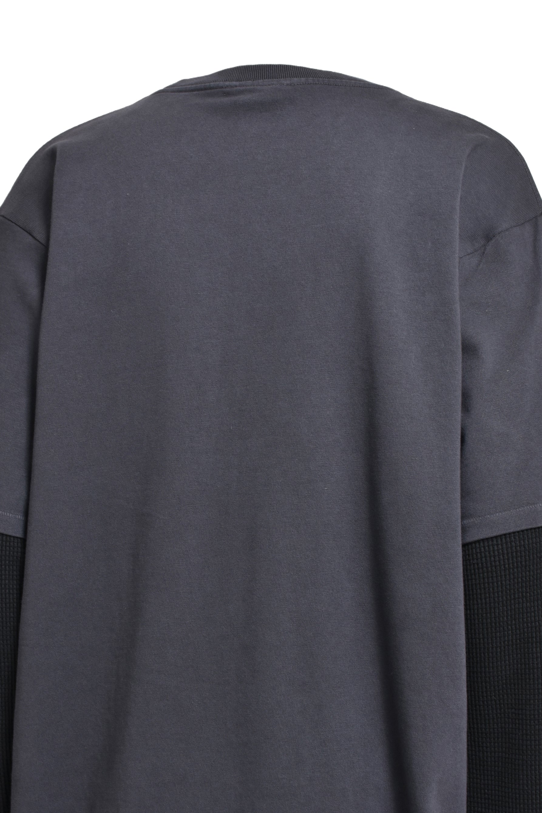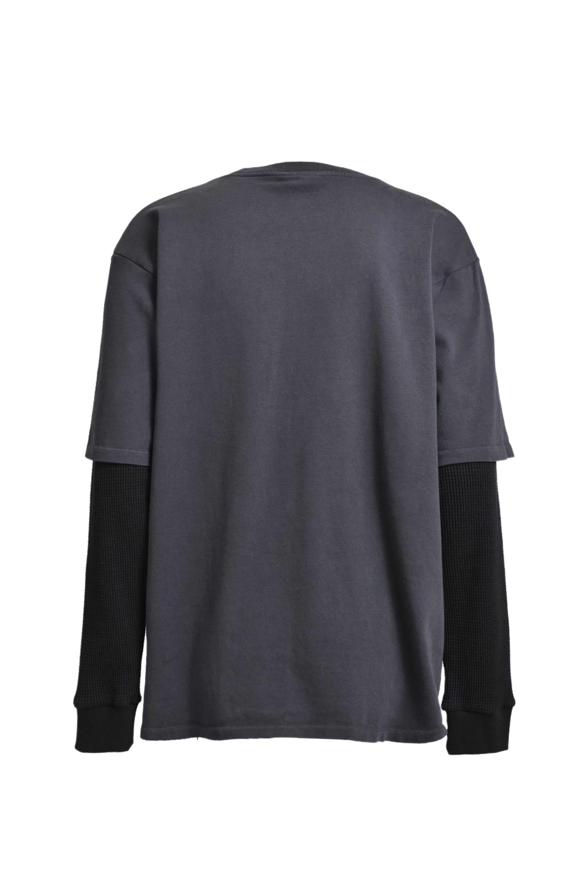 1.5 LB French Terry Cotton Tee With Heavyweight Waffle-Knit Thermal Sleeve Attachments. Featuring Screen-printed “Raiders” Graphic. 100% Cotton, Ribbed Collar, Sleeve Cuffs, Single Stitch Hem & Made in Los Angeles, California.